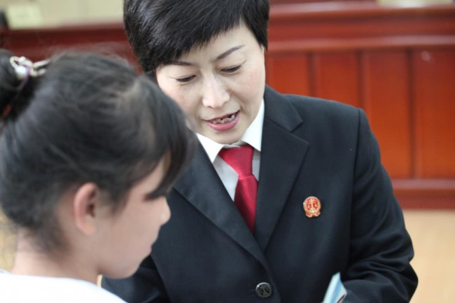 今天的法治课堂丰富多彩。在源汇区人民法院一号审判庭,郾城区实验小学的同学们在法官的指导下用模拟法庭真实再现了一起盗窃案件的庭审现场。法庭上同学们模拟的认真,旁听的同学聚精会神的学习;未成年人综合审判庭刘亚伟法官为同学们带来了题为《拒绝校园欺凌,维护和谐校园》的法治课。法官走进同学中,用真实的案例告诉同学们什么是校园欺凌,如何面对校园欺凌,传授同学们运用法律武器保护合法权益,进一步加深了同学们对法律知识和司法程序的了解;全国五五普法中期先进个人徐蓓法官带领法官普法团的成员向同学们赠送了口袋书,在法官们殷切的目光中,同学们好奇的打开口袋书,热烈的讨论着法律话题。最后,同学们全体起立,高举右手,集体宣誓争做学法、懂法、用法的好公民。