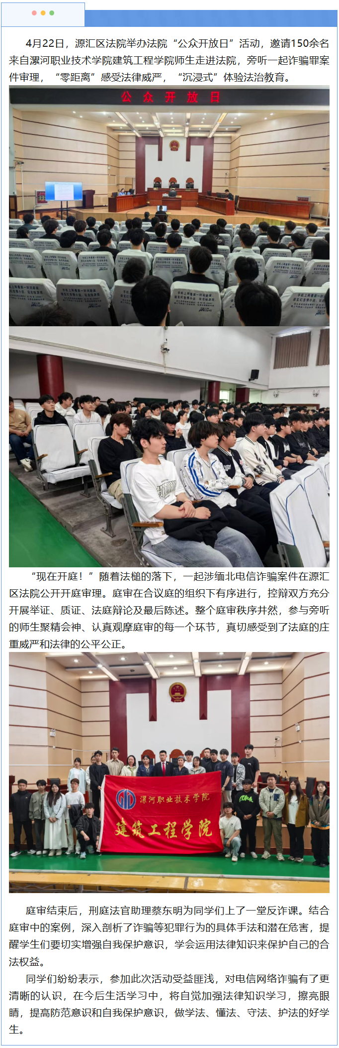 源汇区法院公众开放日,大学生来啦!