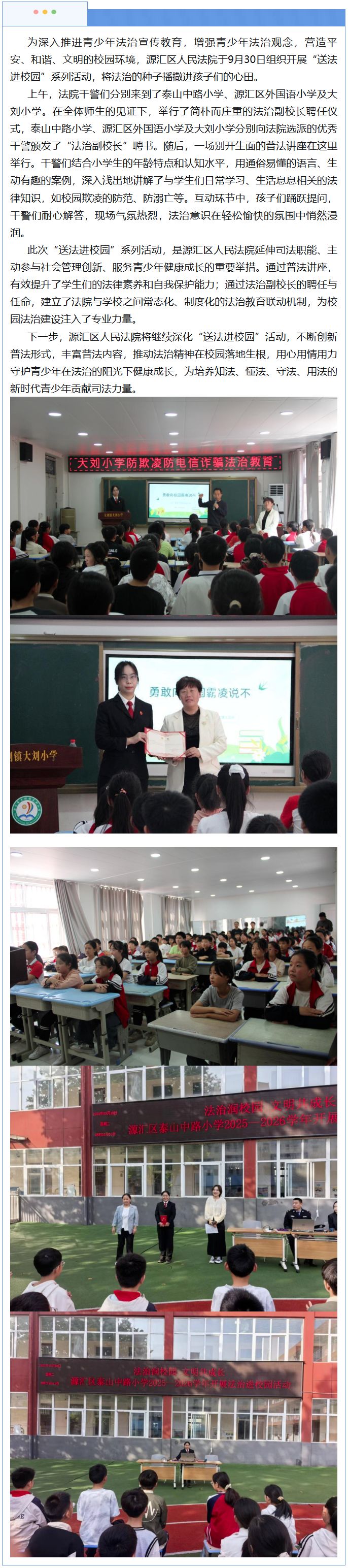 法润校园 护航成长——源汇区人民法院“送法进校园”系列活动扎实开展