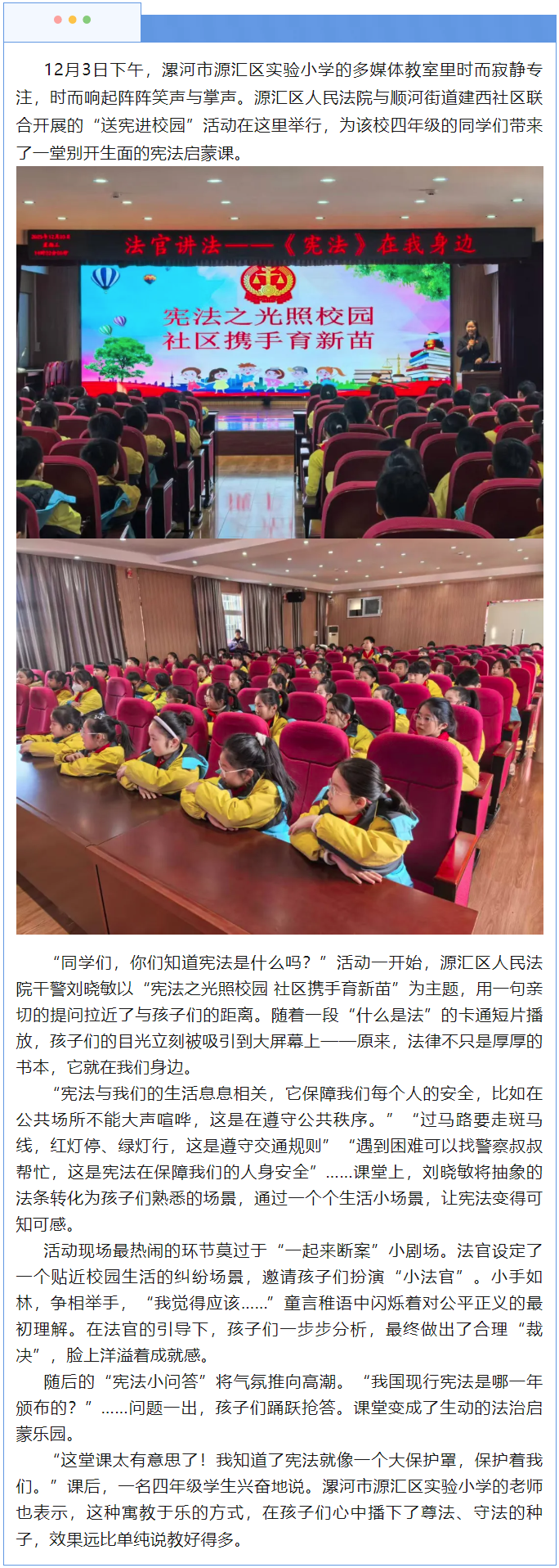 【宪法宣传周】源汇区人民法院联合社区送宪进校园