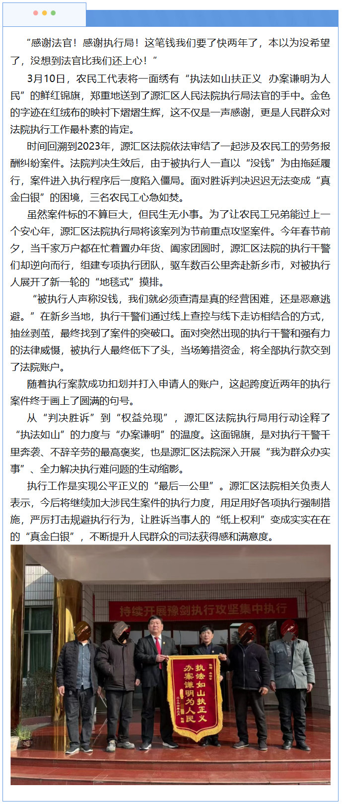 源汇区法院“如我在诉”执行解“薪”愁